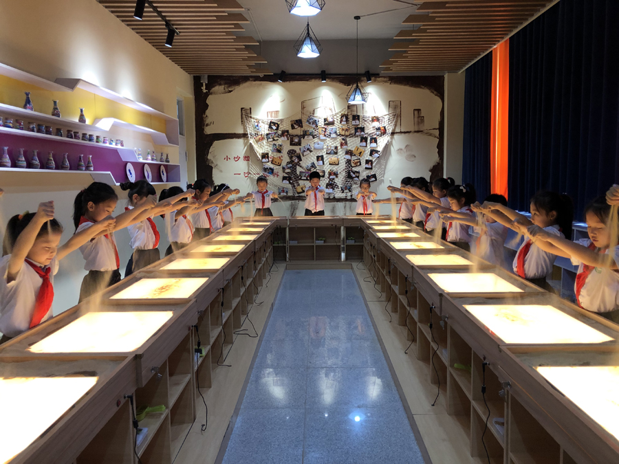 當天,20余名小學生站在沙畫盤前,捧一掬細沙,或勾或點,或揚或撒,或丟或刮,一捧捧細沙在他們的手中揮灑成形,聚沙成畫。他們繪出祖國的田野大地,畫出國家的一草一木,寫出自己作為追夢人的小小心愿。一幅幅讓人身臨其境的山水圖、一個個充滿夢想的沙畫故事映入眼簾,巧手慧心,惟妙惟肖。