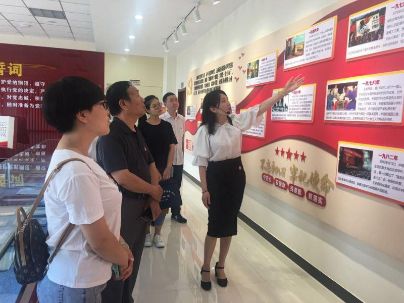 來自6個企業(yè)的10名共產(chǎn)黨員和入黨積極分子滿懷無限崇敬感恩的心情,來到黨群服務活動中心參觀學習。在莊嚴肅穆的宣誓廳,黨員們面對鮮紅的黨旗,高舉拳頭,重溫入黨誓詞。在講解員的導引下,大家進入陳列大廳,回顧黨波瀾壯闊的光輝歷程,深刻感悟習近平新時代中國特色社會主義思想的精髓要義,仔細聆聽大運集團、同譽公司等民營企業(yè)抓黨建促發(fā)展的先進事跡。