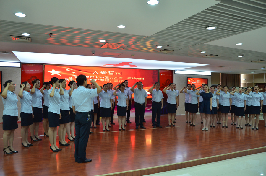 大會在黨員合唱《再唱山歌給黨聽》中拉開帷幕,全體黨員進行了宣誓(如圖),黨委委員權建文宣讀了對該院優秀共產黨員代表進行“七一”表彰的決定。黨日活動在《支部競賽曲》《歌唱英雄 歌唱祖國》《永遠跟黨走 點贊新時代》等精彩節目中進行,中心醫院的醫護工作者用飽含熱情的表演表達對黨和祖國的深切熱愛和美好祝福,為黨的98歲生日獻禮,與會的全體黨員受到了一次深刻的黨性洗禮。