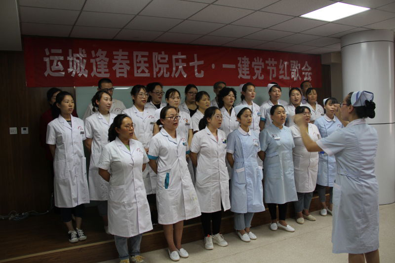 6月28日,運(yùn)城逢春醫(yī)院職工慶“七一”唱紅歌。