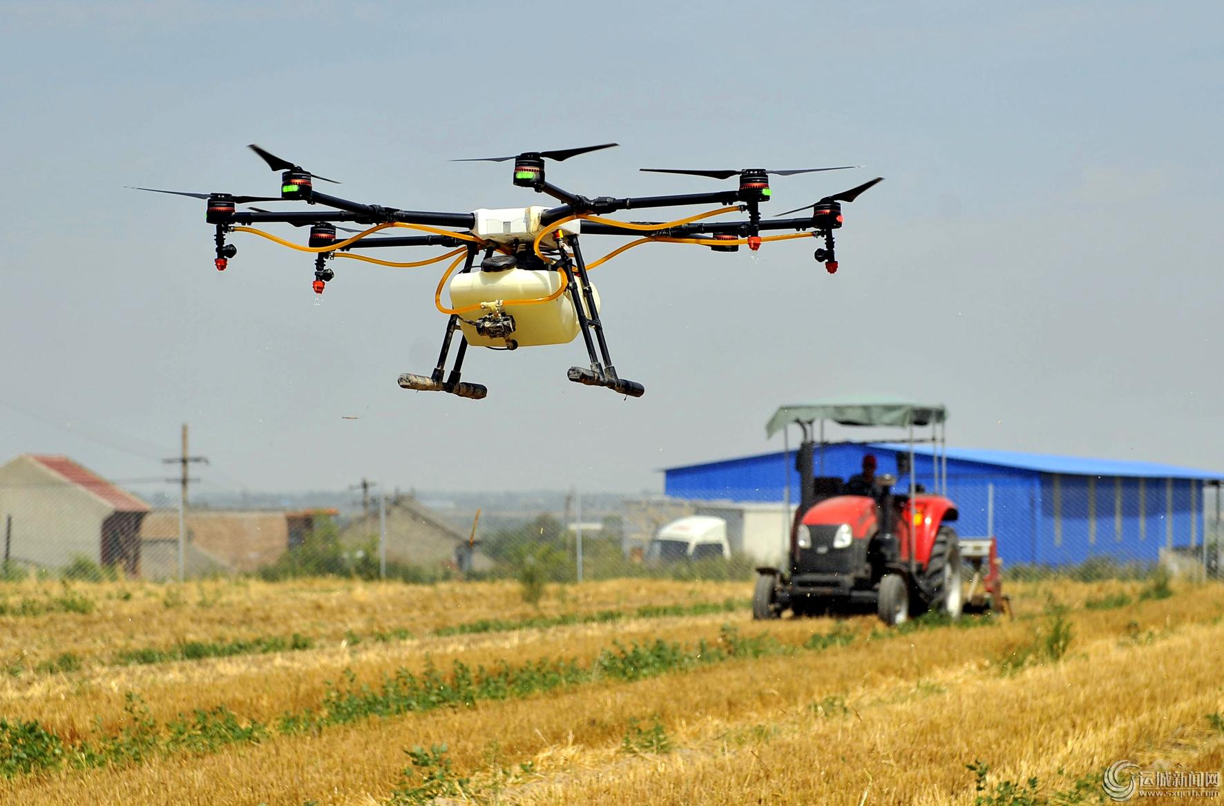 鹽湖區(qū)無人機植保和麥后機械套種秋糧 記者 馮革才 攝