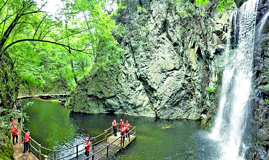 為了感受這個線路的質(zhì)量,記者跟隨第三批團隊進行了探訪,感覺不虛此行。這個線路上的主要景點都是當(dāng)?shù)氐摹巴跖啤保瑑蓚€4A級景點,一個3A級景點,有山有水有特色。其實,老君洞并不是一個洞,而是由野人谷、太清谷和包括老君洞在內(nèi)的幾個天然溶洞組成的綜合性景點。從野人谷到太清谷,自上而下一路跟隨你的是身旁的淙淙泉水,間或有或大或小的瀑布帶給你驚喜。景區(qū)別具匠心地以竹筒的造型托起泉水,連接起整個水道,中間特意設(shè)置各種模樣的盛水物件,有葫蘆,有大甕,還有茶壺。水聲叮咚,再加上滿眼的綠,讓人充分感受到山水相依的大自然魅力。別具特色的景點就要數(shù)溶洞景觀了,每個溶洞的名稱都與老子有關(guān),有老君洞、青牛洞和打鐵洞。洞內(nèi)分外涼爽,各種造型的鐘乳石讓人嘆為觀止,有石琴、石瀑,還有“恐龍入山”“老君布道”等景觀,鐘乳石摸上去都濕漉漉的。龍?zhí)稖系奶厣蔷奘啵诫A盤繞,曲徑通幽。這里還有網(wǎng)紅橋、喊泉、滑道等游樂設(shè)施,讓人流連忘返。在伏牛地下河,游客劃著皮筏艇緩緩入內(nèi),參與感爆棚。徜徉整個河道,你會驚嘆于大自然的鬼斧神工——在山體之內(nèi),沿地下河道,錯綜復(fù)雜地造出一個別樣世界來。值得一提的是,為了給游客增添更多快樂,景區(qū)還特意準(zhǔn)備了“網(wǎng)紅大鍋菜”和大型篝火晚會。