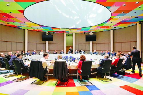 ▲7月2日,在位于比利時布魯塞爾的歐盟總部,歐盟成員國領導人參加歐盟峰會。 歐洲理事會2日決定提名德國國防部長烏爾蘇拉·馮德萊恩擔任下屆歐盟委員會主席。當天,歐洲理事會還選舉比利時首相夏爾·米歇爾擔任下屆歐洲理事會主席,提名國際貨幣基金組織總裁克里斯蒂娜·拉加德擔任下任歐洲中央銀行行長,提名西班牙外交大臣何塞普·博雷利·豐特列斯擔任下任歐盟外交和安全政策高級代表。新華社發