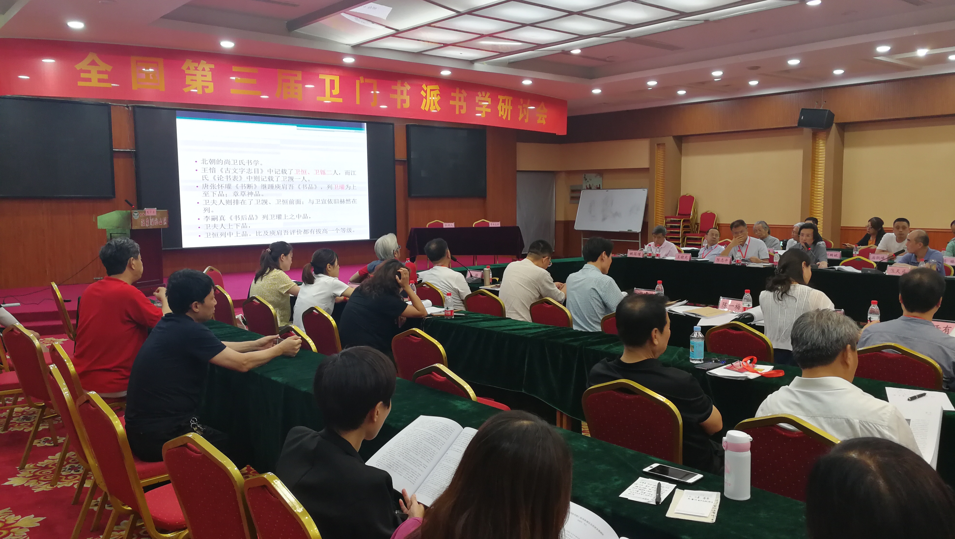 中國書協學術委員會副主任張天弓,中國書協學術委員會委員、山西大學教授姚國瑾,中國書協學術委員會委員、《書法導報》副總編輯姜壽田,中國書協學術委員會委員、暨南大學教授、博士生導師陳志平等20余位來自全國的書法名家、書學理論家受邀參會。專家學者們從各自的書學研究課題出發,圍繞“衛門書派”展開深入探討,從歷史定位、書體源流、繼承發展、文論研究、美學價值等多個方面,對“衛門書派”進行論證、分析,充分挖掘其歷史文化價值和書法學術價值。