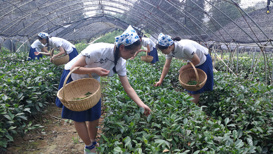 7月15日,位于夏縣“天然氧吧”的泗交厚民晉茶員工正忙著采摘新茶。