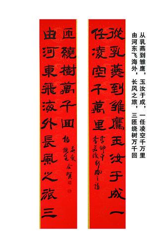 運(yùn)城市楹聯(lián)學(xué)會(huì)會(huì)長(zhǎng)楊振生受邀參加了婚禮,撰聯(lián)以賀“從乳燕到雛鷹,玉汝于成,一人凌空千萬里;由河?xùn)|飛海外,長(zhǎng)風(fēng)之旅,三匝繞樹萬千回”。(下圖)有感于楹聯(lián)為婚禮增色不少,他感慨地說,“這樣別具一格的婚禮形式,文化氣息濃郁,既為新人送上了別致的祝福,也更好地傳播了楹聯(lián)文化,兩全其美,相得益彰”。