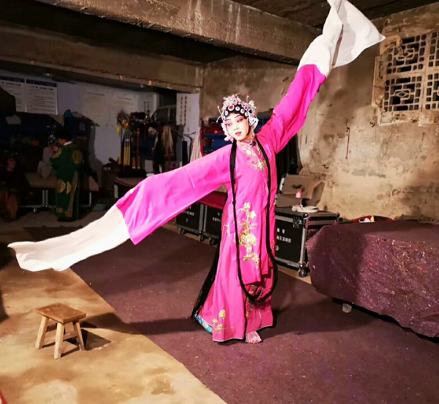 在公園、學校、鄉村、企業以及公共場所,人們總能看到她的自打自唱。她所在的蒲劇團有時也在開演之前,把她的自打自唱列為重要段子,加演在戲前,給觀眾送上一道特別的文化大餐。