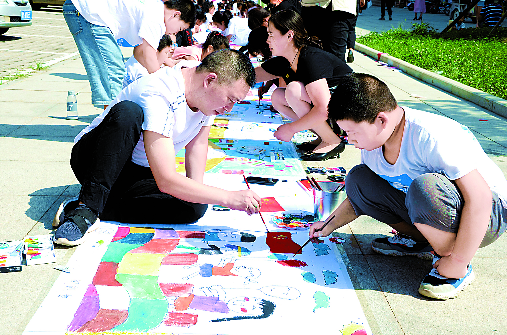 當(dāng)日,萬榮縣圖書館樓前一百米長的畫卷上,“百米畫卷頌祖國”親子繪畫大賽成功舉行,一百對(duì)親子用畫筆表達(dá)了對(duì)祖國的無限熱愛之情。這次活動(dòng)由萬榮縣文化和旅游局主辦,萬榮縣文化館、藝峰畫社、希望美術(shù)教育承辦。