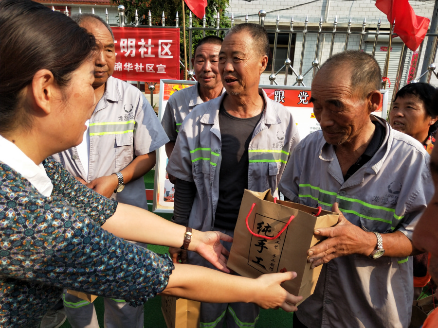 “社區的發展離不開環衛工人,是他們的默默付出,才有這干凈整潔的居住環境。為環衛工送上月餅,就是為了表達我們對環衛工人的感謝。”社區主任杜清珍說。