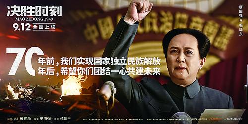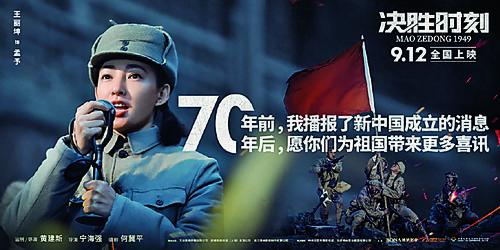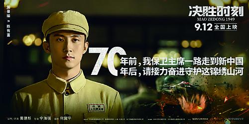 海報(bào)內(nèi)容以角色口吻講述“70年前”各自的責(zé)任擔(dān)當(dāng),傾述了對新中國的無限暢想。每一聲溫潤人心的獨(dú)白,都飽含那些為新中國的誕生付出的人們對未來的祖國和人民深深的祝福。唐國強(qiáng)飾演的毛澤東,發(fā)出“團(tuán)結(jié)一心共建未來”的期盼,是一代領(lǐng)袖對后人凝聚力量建設(shè)祖國的殷切囑托;黃景瑜扮演的警衛(wèi)員陳有富,則用一句“請接力奮進(jìn)守護(hù)這錦繡山河”,表達(dá)了傳承保家衛(wèi)國使命的熱烈希冀。