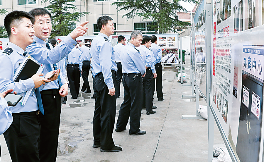 與會人員觀看“科技興警”工作板面 李政奇 攝