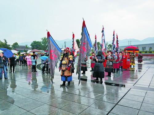 演出中,飾演開道大將軍的是內蒙古人謝括。身披鎧甲,手持弓箭,他一身行頭就有15公斤。從事美術專業的他,對傳統文化特別感興趣,十年來一直參加類似的傳統文化活動。因為從小非常喜歡關公,所以當得知要參加這次活動時他很高興,希望能為弘揚關公文化作出一點貢獻?!氨M管下雨,但并不會影響自己的勁頭,而是努力做到最好,展示自己角色最好的一面,讓大家了解祭祀活動,了解關公文化背后的故事?!彼f。