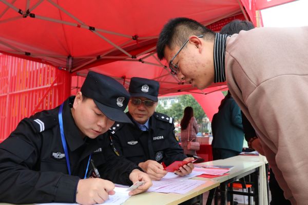 ▲近日,退役軍人在聞喜縣公安局招聘臺前咨詢、報名。