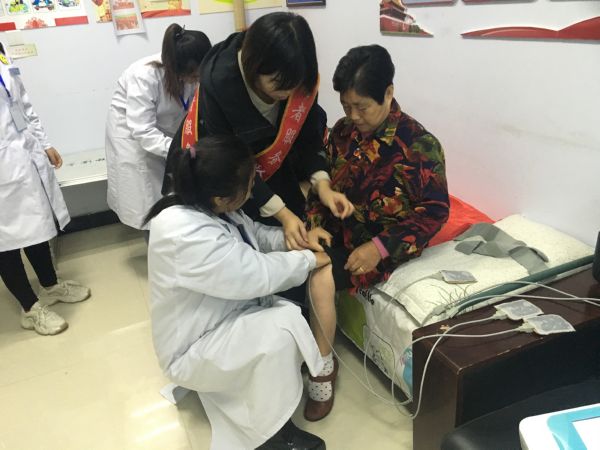 醫護人員用儀器在給居民做康復理療。 樊亞楠 攝
