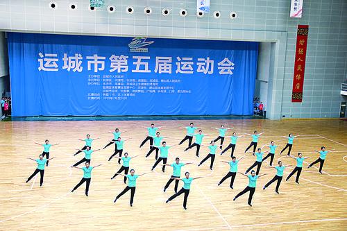 運城晚報訊(記者 杜磊 通訊員 柴孟婷)10月12日,運城市第五屆運動會(群眾運動)暨第一屆全民健身運動會廣播體操比賽在市體育館圓滿進行。此次比賽由運城市人民政府主辦,運城市體育局和市總工會承辦,來自市直單位的15支代表隊、近600名運動員參賽。比賽還特別邀請今年國慶大閱兵黨旗護旗手、中國人民解放軍三軍儀仗隊運城籍戰士李國震和陸麒先作為嘉賓現場觀摩指導。