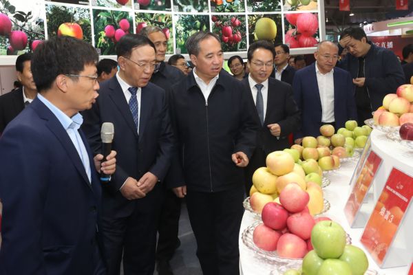 10月21日,王成、李思進、劉志宏、朱鵬等省市領導與嘉賓參觀第四屆山西(運城)國際果品交易博覽會。 記者 雷哲俠 攝