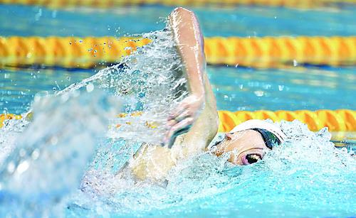 ▲10月21日,季新杰在比賽中。 當(dāng)日,在武漢進(jìn)行的第七屆世界軍人運動會男子200米自由泳決賽中,中國選手季新杰以1分46秒54的成績獲得冠軍。