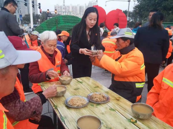 當(dāng)天一早,這11名黨員就來到愛心早餐發(fā)放地,準(zhǔn)備就餐的桌椅板凳。待環(huán)衛(wèi)工人到來之時,大家分工有序、熱情地招呼環(huán)衛(wèi)工人入座,有的幫著端菜,有的幫著打湯,有的幫著拿饅頭……待環(huán)衛(wèi)工人就餐完畢后,志愿者們又將碗筷、桌椅收拾干凈。