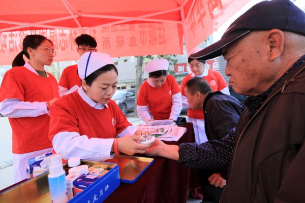 10月29日,運城市第三醫院護士為市民測血糖。 記者 景冬波 攝