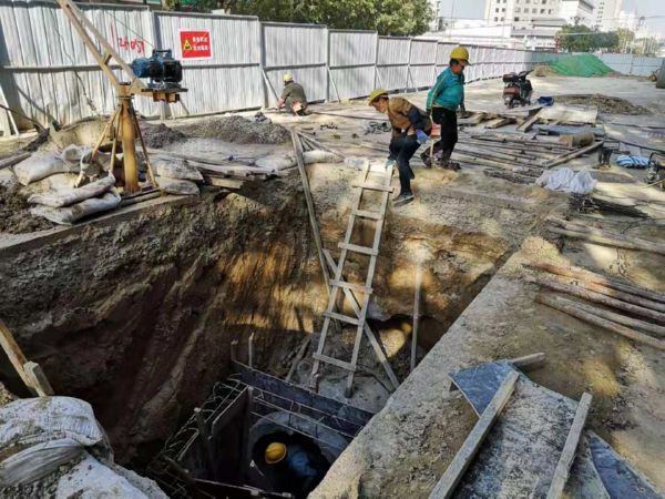 ▲紅旗街雨污分流管網改造頂管作業井施工現場緊張有序 祁克寧 攝