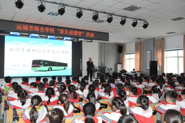 運城晚報訊(記者 樊朋展)“同學們,公交車行駛中不要把頭或手伸出窗外,也不要嬉笑打鬧或做游戲……”10月31日,市海倉學校學生的家長、就職于市公交總公司的董凱,用風趣幽默的語言為該校學生帶來“小學生乘坐公交車”主題講座。他從如何查看公交路線、等公交、坐公交、下公交等方面,為孩子們作詳細講解,使孩子們對乘車安全有了更深刻的認識。