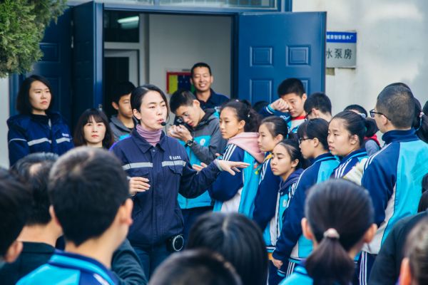 當天上午9時,在工作人員的引導下,學生們實地參觀了安邑水廠一期及二期廠區加藥間、消毒室、沉淀池、加壓泵房等工藝流程車間,并在專業人員的講解中,學習公司的制水工藝流程,體會化學知識在社會實踐中發揮的作用。