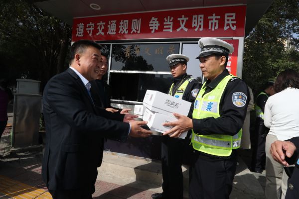 “收到這樣暖心的禮物很開心,我們一定會站好崗、值好勤,保障道路安全暢通?!丙}湖交警大隊四中隊民警閆軍說。