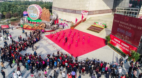 精彩的群眾文化文藝表演表達了河東兒女對祖國、對山西、對家鄉運城的無限熱愛之情。舞蹈《花開盛世》訴說著新中國成立七十周年是巨變的七十年,是奮斗的七十年,是站起來、富起來、強起來的七十年,是一步一步走向新時代的七十年;歌伴舞《這里最早叫中國》告訴人們,華夏文明發祥于河東、燦爛于河東,悠久的歷史歲月、深厚的文化底蘊,是生活在這片熱土上的文化工作者們取之不竭的創作力量和源泉;絳州鼓樂《龍騰虎躍》敲出晉南群眾的豪邁氣勢和豪放性格,愛國豪情同頻共振,美好祝福永在常新……
