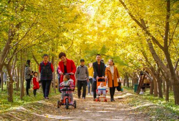 11月3日,游客在臨猗縣三管鎮卓氏銀杏園游玩。 記者 金玉敏 攝