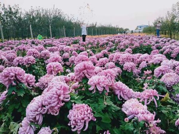 11月5日,記者在卓氏銀杏園里看到一幅曼妙的秋景,讓人心曠神怡:地上成片的銀杏樹葉在陽光的照射下泛著金光;銀杏樹旁長長的一溜兒是各色盛開的菊花。飛鳥美人紅線、紫燕……許多菊花新品不僅有著婀娜多姿的造型,還有著充滿詩意和美感的名字。樹林里,拍抖音的游客正耍得不亦樂乎:有的從地上抓起一大把樹葉向頭頂上方使勁拋撒,有的圍著絲巾擇一小徑緩步跑動,還有的湊近菊花用鼻子聞了又聞……