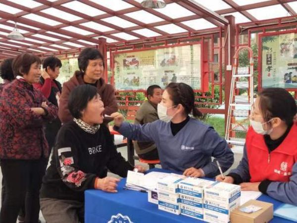 “你后面的牙得拔,不然上下沒有對齒不吻合,牙齒還會伸長;前面這顆牙根得補上,不然窟窿會越大……”當天下午,信合名都社區文化長廊下,轄區嘉貝爾口腔診所的志愿者薛李陽正在為居民免費檢查口腔?!敖涍^檢查,大部分居民都患有牙周病、蛀牙和牙齒缺失的現象,可見居民對牙齒的保護意識整體不高。”薛李陽說。