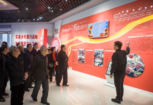 ▲11月5日,萬榮縣離退休干部黨員,在該縣蘋果博覽館參觀展覽。 特約攝影 李克榮