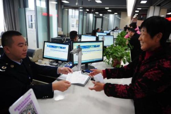 11月7日上午,稷山縣政務服務大廳辦稅窗口,工作人員正在為群眾辦理納稅手續。 薛建磴 攝
