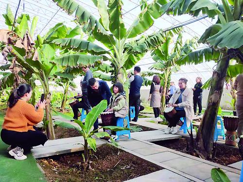立冬后的北方略顯蕭瑟,而眼前的綠意盎然跟外邊的草木枯黃形成了明顯對(duì)比。在雨林音樂(lè)會(huì)大棚中,搭起的支架上藤蔓纏繞,走進(jìn)細(xì)看,上面還掛著拳頭大的綠色果子,人們開(kāi)始紛紛猜測(cè)起來(lái)。“這是青皮核桃嗎?”“有點(diǎn)像梨……”講解老師告訴大家這是百香果,一陣驚嘆之后,不少人開(kāi)始拿起手機(jī)拍照,孩子們則興奮地在其間穿梭來(lái)穿梭去。