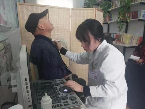 醫護人員在給居民做彩超 陶登肖 攝
