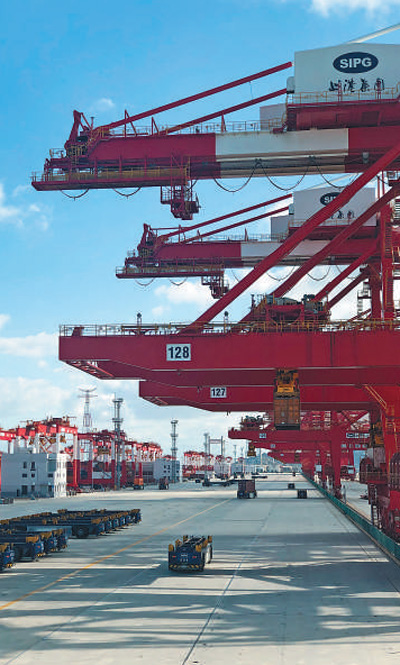 圖為上海洋山深水港四期自動(dòng)化碼頭。2018年碼頭吞吐量實(shí)現(xiàn)201萬(wàn)標(biāo)準(zhǔn)箱。記者 呂 莉攝