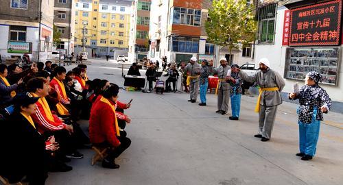 11月15日,在垣曲縣南城社區民發小區,當地居民在自編自演文藝節目,宣傳黨的十九屆四中全會精神。草根演員們表演的節目有《四中全會就是好》、《老兩口學公報》等,深受群眾歡迎。