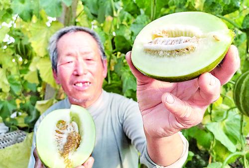 ?11月22日,樂亭縣胡家坨鎮(zhèn)東黃口村的農(nóng)民,在展示已成熟的甜瓜。 近年來,河北省樂亭縣在推進(jìn)農(nóng)業(yè)供給側(cè)結(jié)構(gòu)性改革中,大力扶持發(fā)展設(shè)施甜瓜產(chǎn)業(yè),通過引導(dǎo)農(nóng)民實行集中連片規(guī)模化種植、實施訂單化及品牌化銷售策略,使得這一產(chǎn)業(yè)獲得快速發(fā)展。目前,該縣設(shè)施甜瓜播種面積已達(dá)12萬畝,年產(chǎn)量48萬余噸,年產(chǎn)值達(dá)14億元。 新華社發(fā)