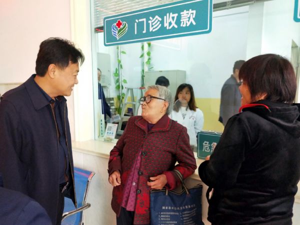▲11月25日,萬榮縣醫保局局長任紅軍(左)在調研“日間病房”試點情況。陶登肖 攝