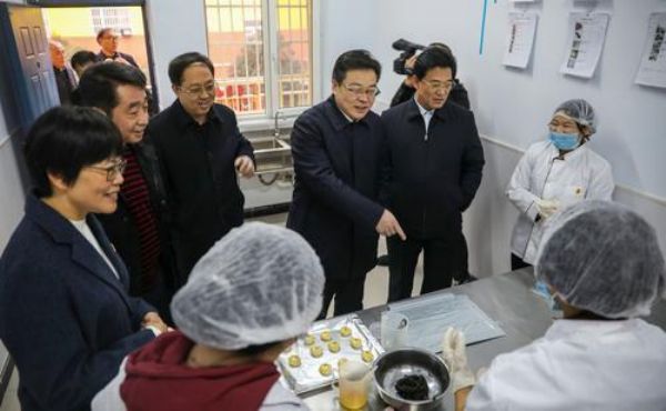 市教育局局長李明一行現場觀摩學生制作鮮花餅
