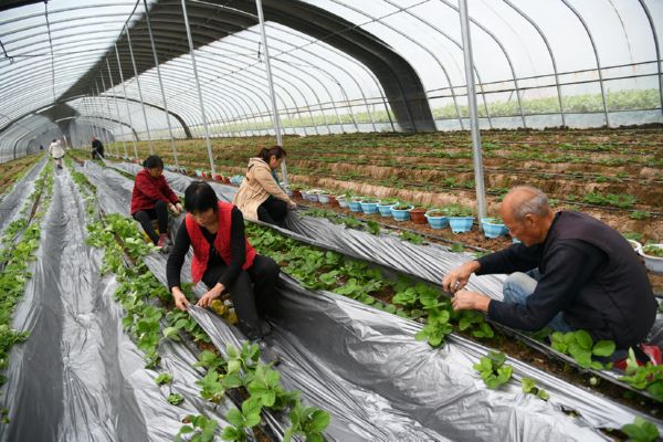 12月2日,聞喜縣郭家莊鎮西宋村晶豐玉種植專業合作社社員在草莓大棚鋪膜。