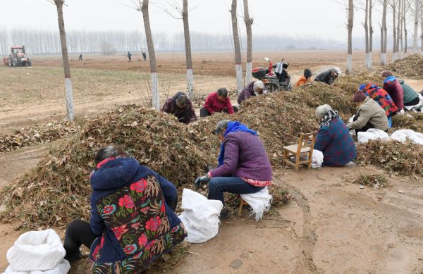 12月2日,河津市柴家村的村民正忙著采摘收獲中藥材。