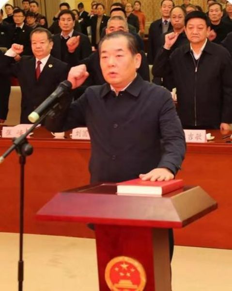 12月2日,在憲法宣傳周活動啟動儀式上,全體人員跟隨鄧雁平面對憲法莊嚴宣誓。 閆建忠 攝