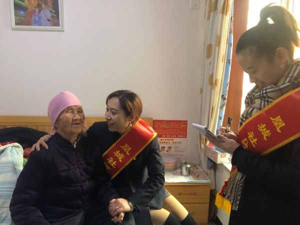 志愿者一行帶著慰問品來到左岸凰城小區周新娃、李春菊等老人家中,與老人嘮家常、聊生活。94歲高齡的周新娃老人與志愿者講述了她一生的經歷,她感慨道:“如今的光景好了,我趕上了好時代,越老越幸福啦!”