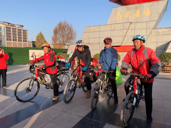 此次“我要去韶山”騎行活動的4位老黨員分別是楊建、胡彪、劉青山、高德倉。他們12月11日早晨從市區南風廣場出發,預計12月26日前到達湖南韶山,全程共騎行2200公里。