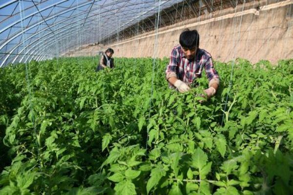 12月13日,聞喜縣裴社鄉裴社村菜農在大棚里管理西紅柿,力爭春節前上市。特約攝影 溫徐旺 攝