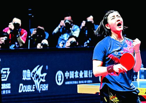 ?12月15日,陳夢在奪冠后慶祝。 當日,在河南鄭州進行的2019國際乒聯世界巡回賽總決賽女子單打決賽中,中國選手陳夢以4比1戰勝隊友王曼昱,奪得冠軍。
