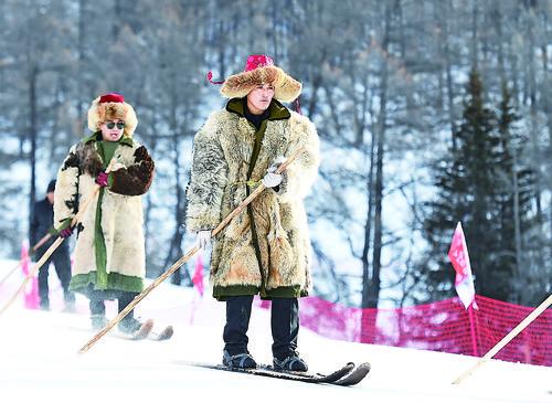 ?12月15日,當地居民表演毛皮滑雪。 當日,傳統毛皮滑雪表演體驗活動在新疆阿勒泰地區富蘊縣可可托海國際滑雪場舉行。本次活動是2020全國新年登高健身大會新疆主會場暨富蘊縣第九屆冰雪風情節項目之一。