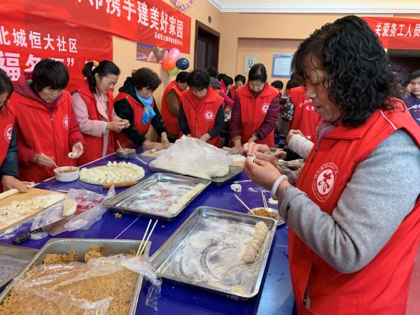 “趁著居民觀看節(jié)目,我們趕緊開始包餃子,等中午飯點,熱騰騰的餃子就出鍋了。”活動現(xiàn)場,身穿紅馬甲的志愿者們在忙著包餃子,為現(xiàn)場居民準備午飯。