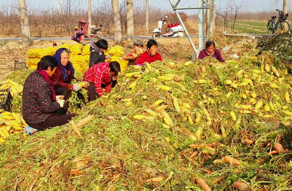 近日,夏縣裴介鎮西滸村的大田蘿卜喜獲豐收。